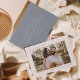 Dusty Blue Boho Simple Photo Heart Script Wedding Thank You Card