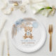 Dusty Blue Boho Teddy Bear Baby Boy Shower Paper Plate