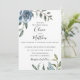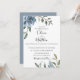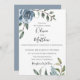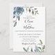 Watercolor flowers in chic dusty blue with botanical branches, wedding invitation. Customise text, font style, colour and size.