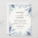 A serene winter design unfolds with delicate dusty blue botanical elements framing the border. Pinecones and frosted foliage evoke a tranquil, natural aesthetic. This design offers a refined and elegant atmosphere for a winter gathering.