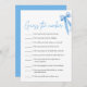 Dusty Blue Bow Guess the Number Bridal Shower Game Invitation