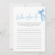 Dusty Blue Bow Who Am I Bridal Shower Game Card