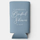 Dusty Blue Bridal Shower Personalised White Script Seltzer Can Cooler