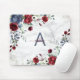 Dusty Blue Burgundy Floral Marble Name Monogram Mouse Pad