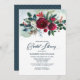 Dusty Blue | Burgundy Red Bloom Bridal Shower Invitation
