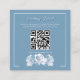 The template is fully editable — you can adjust the text, fonts, colour palette, and overall layout to match your wedding vision. This qr info card, designed in a soft dusty blue tone with delicate calligraphy, blends seamlessly with a wide range of themes.