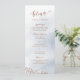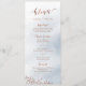Elegant modern calligraphy menu with rustic floral design in copper brown colour on serenity dusty blue watercolor background, great for modern rustic wedding, spring wedding or winter wedding.