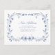 These beautiful, dusty blue and white change of address postcards feature a vintage blue watercolor floral frame with lovely botanical leaves and flowers, and stylish calligraphy along with classic text. The frame surrounds your new address information, on a simple white background. The French look blue toile design is an elegant way to let friends and family know that you have moved.