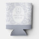Modern soft dusty blue wedding favour can cooler for special ocations like wedding, bridal shower, graduation or birthday celebration. Features a chinoiserie floral pattern of peonies for timeless sophistication. Monogram in a wedding crest.