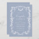 Elegant French Victorian Blue Floral Couples Shower invitation with custom text on the back.