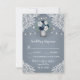 Dusty Blue Country Mason Jar Wedding RSVP Cards - feature a dusty blue or slate/steel blue background with white printed lace, string lights and a mason jar filled with floral elements, greenery and more. View the matching collection on this page to find coordinating items.
