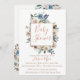 Watercolor flowers in dusty blue and cream with rose gold frame Baby Shower Invitation. Personalise text, font style, colour and size.