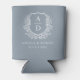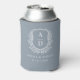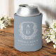 Dusty Blue Crest Modern Monogram Wedding Can Cooler