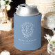 Dusty Blue Crest Modern Monogram Wedding Can Cooler