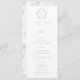 Vintage Regency Dusty Blue Crest monogram, wedding menu. Vintage inspired Baroque style crest with coordinating blue typography. Features, elegant Chinoiserie Style garden floral pattern backing.