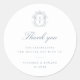 Dusty Blue Crest Monogram Wedding Thank You Classic Round Sticker