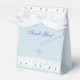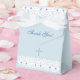Personalize this Christian baptism favor box to create a thoughtful keepsake for your little one’s special, faith-filled day. This design features a cross in elegant soft blue pearl graphics and delicate white lace and pearl graphic details against a dusty blue background, perfectly blending a minimalist and vintage look. Ideal for christening, simple baby dedication, or baptism celebrations, the design combines timeless typography with a graceful script font. These favor boxes make charming party favors and a heartfelt way to say thank you to your guests. See the collection for matching items to complete your coordinated celebration.