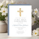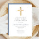 Dusty Blue Cross Religious Boy First Communion Invitation