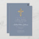 Personalised Dusty Blue Cross Religious Boy First Communion Postcard. Part of the Dusty Blue Cross Boy First Communion Invitation Suite with matching stationery and party accessories available.