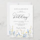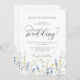 Hand painted watercolor floral wedding invitation featuring wild flowers in shades of dusty blue and yellow with modern calligraphy script and QR code with details in the back. Beautiful elegant watercolor floral all in one wedding invitation perfect for rustic weddings and outdoor summer weddings. You can personalise the wording, font style, colour and size in front and back of the card. Please feel free to contact me for matching items.