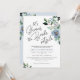 This soft dusty blue bridal shower invitation gives guests the option to stay awhile and visit or drive by and with the bride well! It can be used as a Drive By Bridal Shower invitation or an Outdoor Bridal Shower Invite. The invite is framed by soft shades of blue florals and natural green branches.