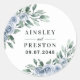 Dusty Blue Elegant Floral Boho Rose Rustic Wedding Classic Round Sticker