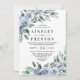 Design features elegant watercolor greenery with boho dusty blue rose floral elements. Design also features a modern typography font layout.