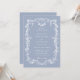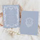Elegant blue floral frame wedding invitation with a floral crest and monograms on the back.