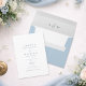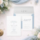 This Dusty Blue French Wedding Invitation features a refined minimalist layout with soft blue-gray typography, classic serif lettering, and delicate script accents. The airy composition and balanced spacing create a sophisticated estate wedding aesthetic perfect for romantic outdoor celebrations, garden venues, and luxury château-inspired weddings.