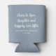 Celebrate your special day with this beautifully designed wedding can cooler featuring the heartfelt phrase "Cheers to Love, Laughter, and Happily Ever After." This customisable favour includes the couple’s names and wedding date, making it the perfect keepsake for guests. With a stylish script font and an elegant dusty blue background, this drink sleeve adds a touch of elegance to any wedding, engagement party, or anniversary celebration. This charming and functional wedding accessory keeps drinks cold while creating lasting memories.