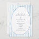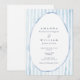 This refined invitation blends hand-painted dusty blue stripes with a delicate watercolor oval border, creating a romantic estate aesthetic perfect for garden, château, and Hudson Valley weddings. The sophisticated navy typography adds depth and luxury while maintaining a soft, fine-art feel.