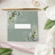 A beautiful, modern, elegant square invitation envelope, pale eucalyptus blue grey green watercolor texture, with a bouquet of lush grey green botanical leaves and eucalyptus watercolor floral motif on the front & inside back flap and return address on back of envelope. Part of a co-ordinated suite. See full collection here: https://www.zazzle.com/collections/elegant_eucalyptus_green_botanical_bridal_shower-119330045467288535 contact designer for additional products. Copyright Elegant Invites, all rights reserved.