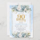 Dusty Blue Eucalyptus Gold 90th Birthday Milestone Invitation
