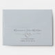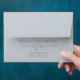Simple, modern calligraphy dusty blue wedding invitation 5x7 envelope with return address, watercolor eucalyptus greenery inside and faux silver rope heart.