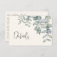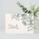 This beautiful wedding details enclosure card has been painted in watercolor and is original artwork from our studio. Featuring eucalyptus and foliage in sage green and dusty blue tones on a beige, cream background Customise with your own personal wedding information, and add a QR code.