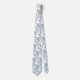 A white and dusty blue wedding neck tie featuring watercolor-painted dusty blue eucalyptus sprigs against a solid pure white background.
