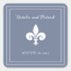 Elegant and simple Wedding sticker featuring a fleur de lis against a dusty blue background. This design is a unique choice for a modern wedding. Easy to customise with your wedding details. Click "Customise It" to find more personalisation options.