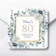Dusty Blue Floral 80th Birthday Favour Square Sticker