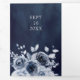 Dusty Blue Floral All in One QR Code Navy Wedding Tri-Fold Invitation