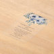 A beautiful dusty blue watercolor floral on our acrylic clear wedding invitation with grey text from bride and groom with parents.