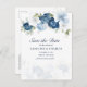 Elegant floral watercolor dusty blue, white, and navy floral bouquet wedding save the date card. The card features a script "Save the Date", that can be changed to a font type of your choice that are available here when you click the "Personalise" button.