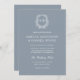 Dusty Blue Floral Crest Monogram Wedding QR Code Invitation