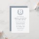 Dusty Blue Floral Crest Monogram Wedding QR Code Invitation