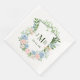 These paper dinner napkins are perfect for your engagement party, shower, rehearsal dinner or wedding. The crest with blush pink, dusty blue, and white watercolor roses on green foliage is stunning. And, your initials and party date/wedding date in 2 shades of coordinating green in a beautiful traditional yet modern font is the icing on the cake.