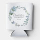 Very elegant can coolers for a 21st birthday party. A floral wreath features dusty blue peony and rose flowers nestled in blue eucalyptus leaves. The woman's name is written in a trendy script font. 21st Birthday and date follow. This 21st Birthday can cooler is part of the 21st Birthday Dusty Blue Floral Budget collection. You'll find many templates to create personalised party supplies and invitations.