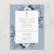 Dusty Blue Floral First Holy Communion Invitation Postcard