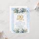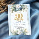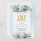 Dusty Blue Floral Gold Chic 90th Birthday Invites