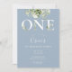 Dusty Blue Floral Greenery 1st Birthday Photo Invitation