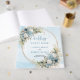 This guest book provides a beautiful space for guests to leave their names, messages, and heartfelt wishes. The soft blue floral palette paired with airy greenery creates a calm, romantic look that complements a wide range of décor styles, from classic and formal to bohemian and contemporary. The gold glitter frame adds a subtle touch of luxury without overpowering the design.