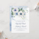 Watercolor dusty blue thistle, anemone flowers, eucalyptus greenery rehearsal dinner invitations
